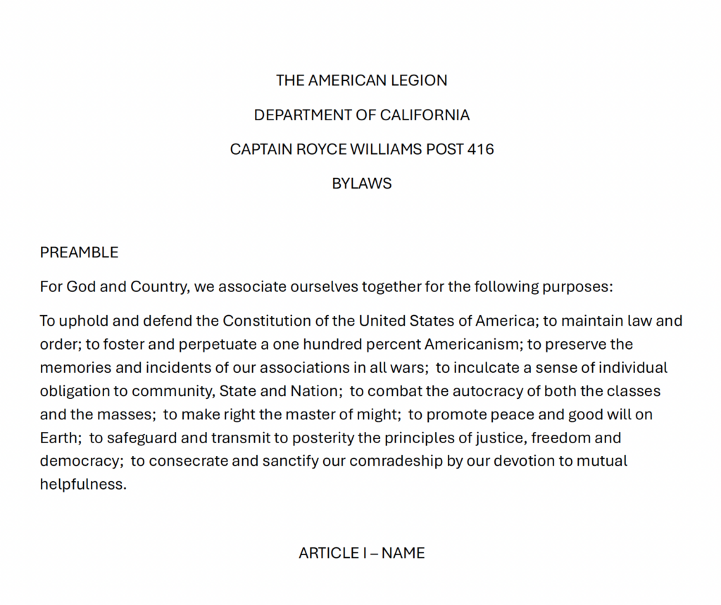 Please take a moment to read our revised Bylaws for 2026 and beyond. These will be voted on at the next membership meeting.