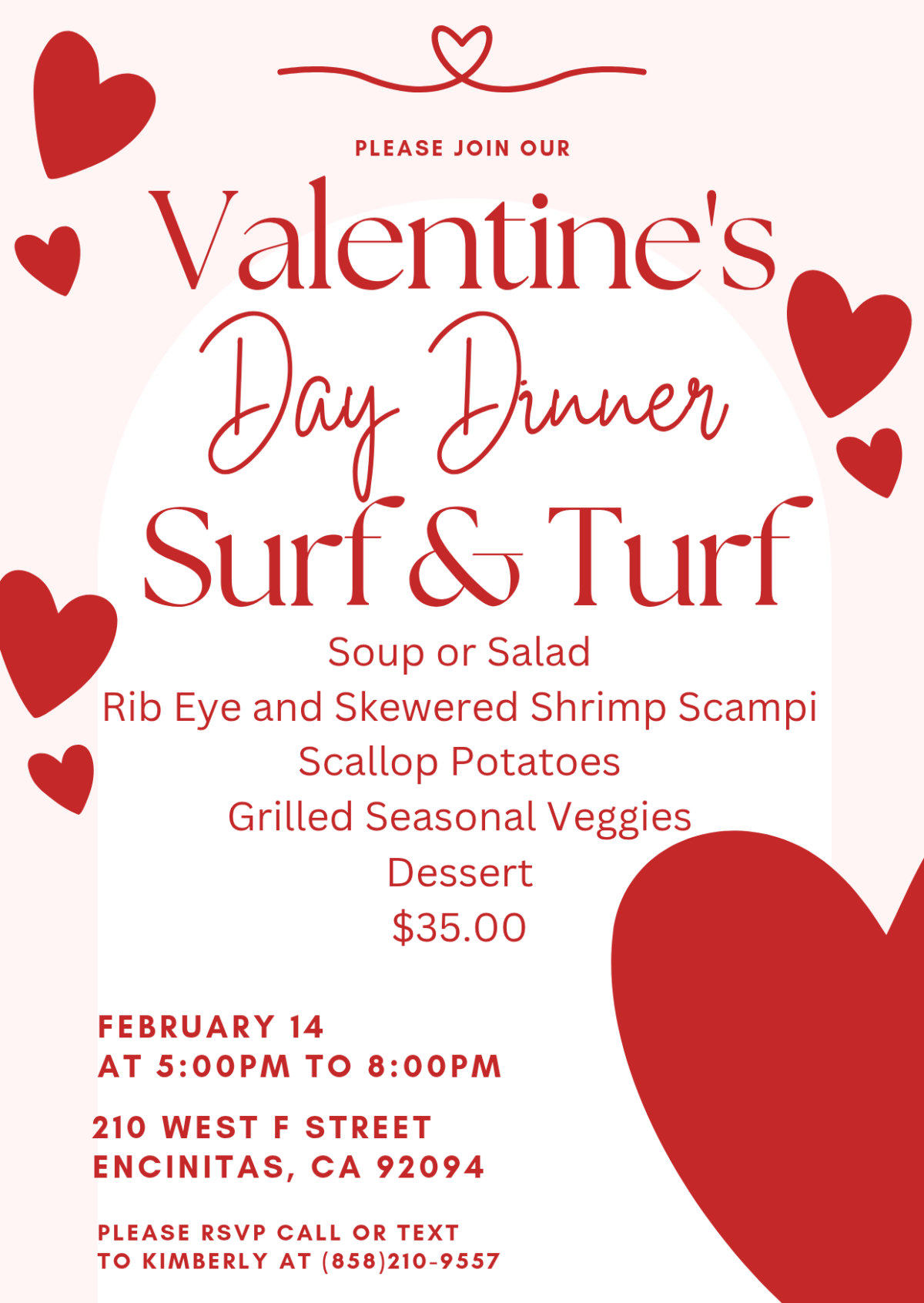 Valentines Day Dinner 5 to 8pm