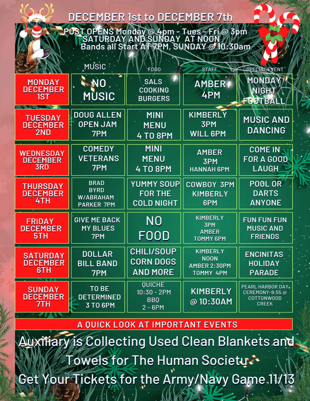 American Legion Post 416 in Encinitas, California, has proudly served veterans, youth, and families since 1930. Known as “The Post by the Coast,” it’s one of the first American Legion posts in all California and a vital part of our community.